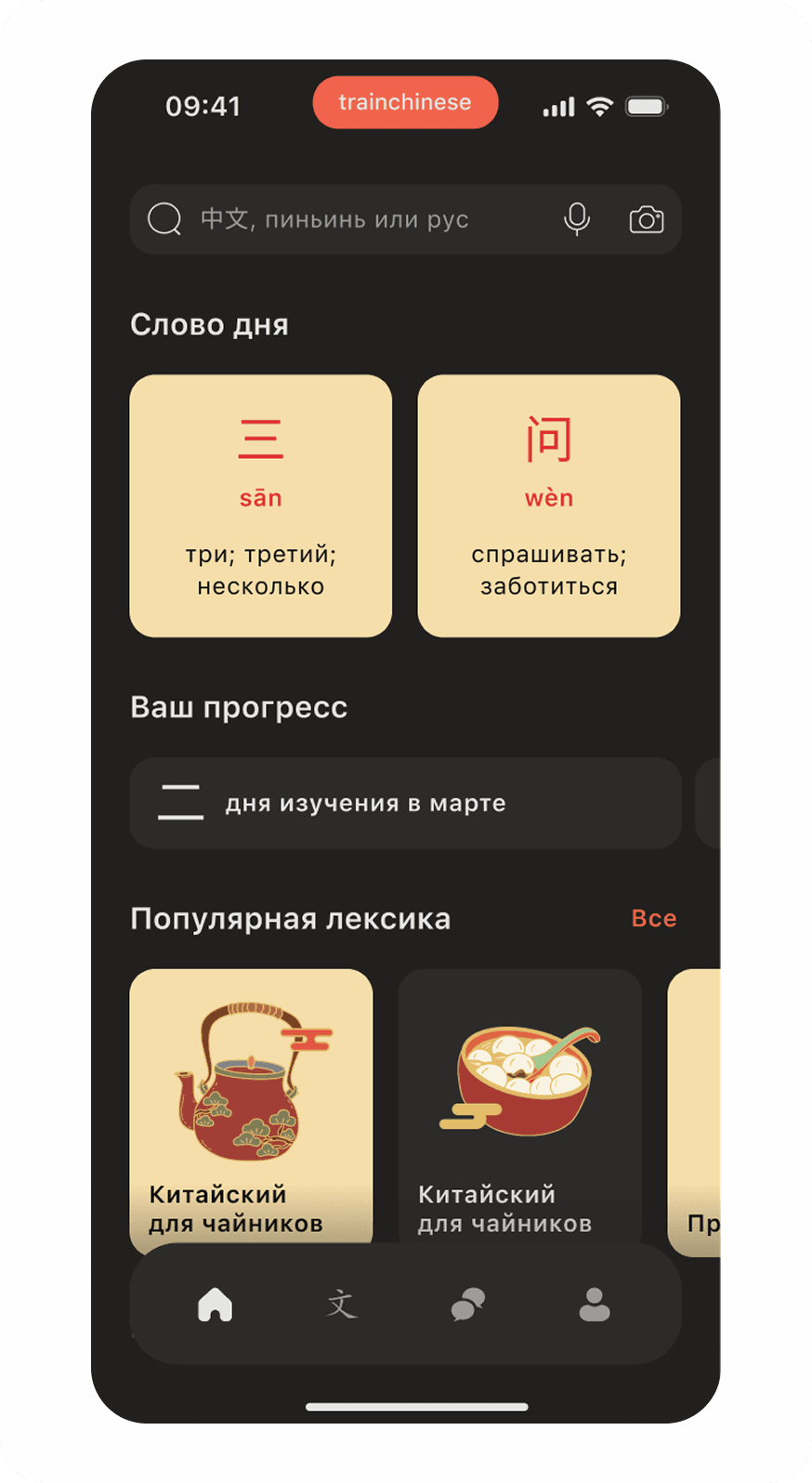 TrainChinese — мобильное приложение для изучения китайского с упором на словарь и тренировки